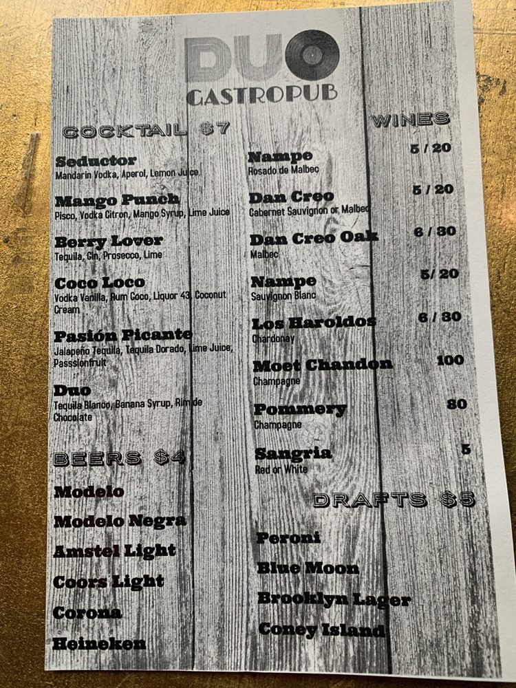 Welcome to Duo Gastropub, the vibrant culinary gem located at 4037 75th St, Elmhurst, NY. This lively venue pulsates with great music, creativity, and a delightful menu that caters to all taste buds. The Duo Eat section features crowd-pleasers like Guaca & Chips and hearty Nachos, ideal for sharing or savoring solo.